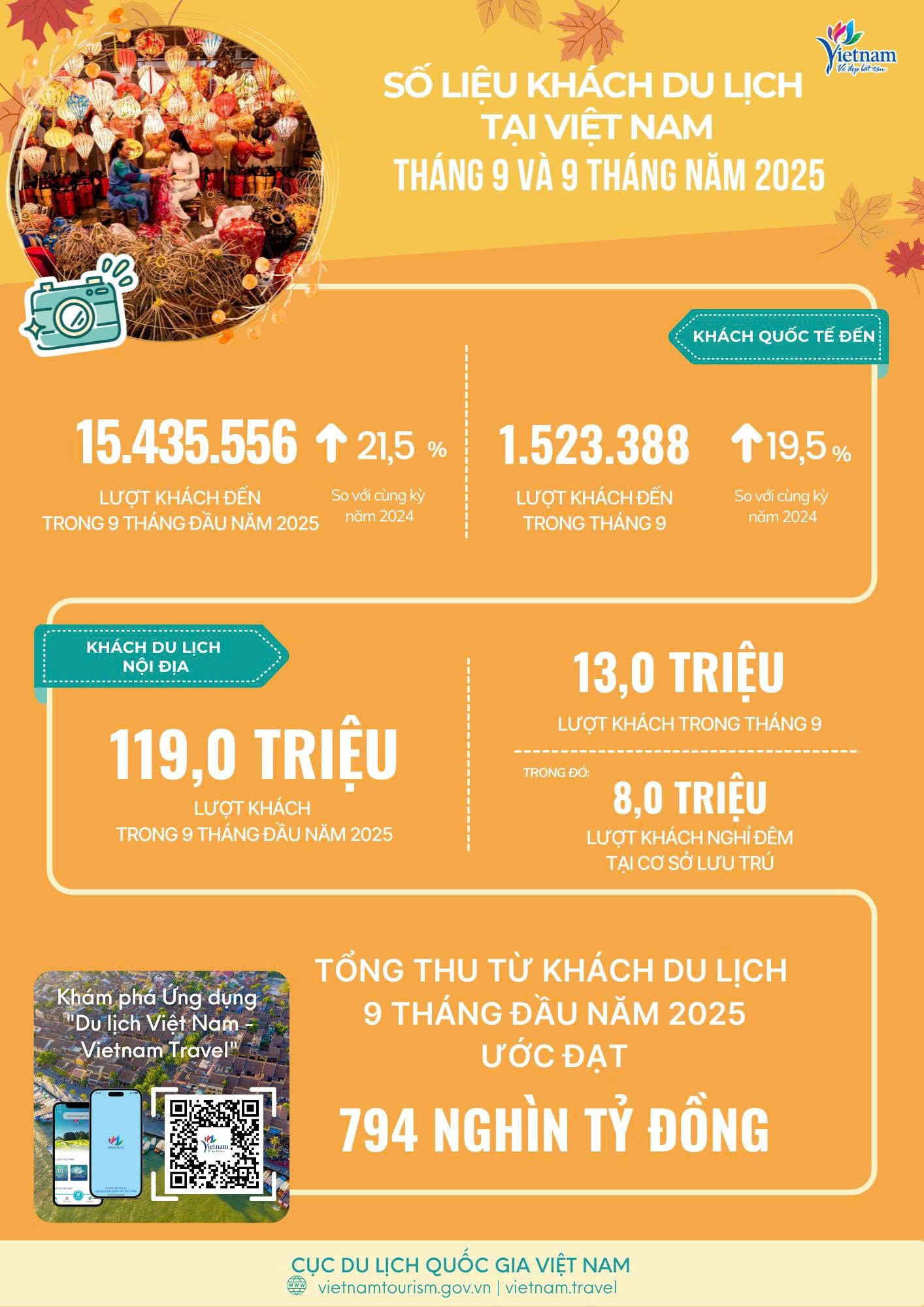 [Infographic] Tình hình khách du lịch tháng 9 và 9 tháng đầu năm 2025