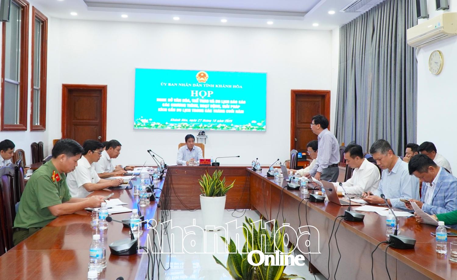 Phát biểu kết luận cuộc họp, Phó Chủ tịch Thường trực UBND tỉnh Nguyễn Long Biên đánh giá cao sự nỗ lực của các cơ quan, đơn vị, doanh nghiệp đã chủ động tham mưu, khắc phục khó khăn, thường xuyên nghiên cứu, xây dựng sản phẩm mới và duy trì tổ chức các hoạt động để đón, phục vụ du khách đến Khánh Hòa. Để hoàn thành mục tiêu đề ra, đồng chí Nguyễn Long Biên giao Sở Văn hóa, Thể thao và Du lịch chủ trì, phối hợp với Hiệp hội Du lịch Nha Trang - Khánh Hòa, các doanh nghiệp xây dựng kế hoạch chi tiết để tổ chức các sự kiện văn hóa, thể thao, du lịch, các chương trình kích cầu du lịch, các sản phẩm mới để phục vụ du khách đến Khánh Hòa trong những tháng cuối năm, nhất là đợt lễ Giáng sinh, Tết Nguyên đán 2026. Trung tâm Xúc tiến Đầu tư, Thương mại và Du lịch tập trung xúc tiến các thị trường truyền thống, như: Trung Quốc, Hàn Quốc, Nga và mở rộng thị trường khách Thái Lan, Úc, Malaysia, Kazakhstan, Ấn Độ, Nhật Bản; tăng cường ứng dụng công nghệ thông tin trong hoạt động quảng bá du lịch. UBND các xã, phường xây dựng các hoạt động văn hóa, văn nghệ phù hợp điều kiện địa phương; xây dựng, phát triển mô hình kinh tế đêm, đa dạng hóa sản phẩm du lịch mang bản sắc văn hóa. Hiệp hội Du lịch Nha Trang - Khánh Hòa phối hợp với Hiệp hội Du lịch Ninh Thuận chủ trì xây dựng các gói kích cầu du lịch, phát triển chương trình du lịch mới, liên kết với các hãng hàng không và công ty lữ hành lớn để mở rộng thị trường khách quốc tế...