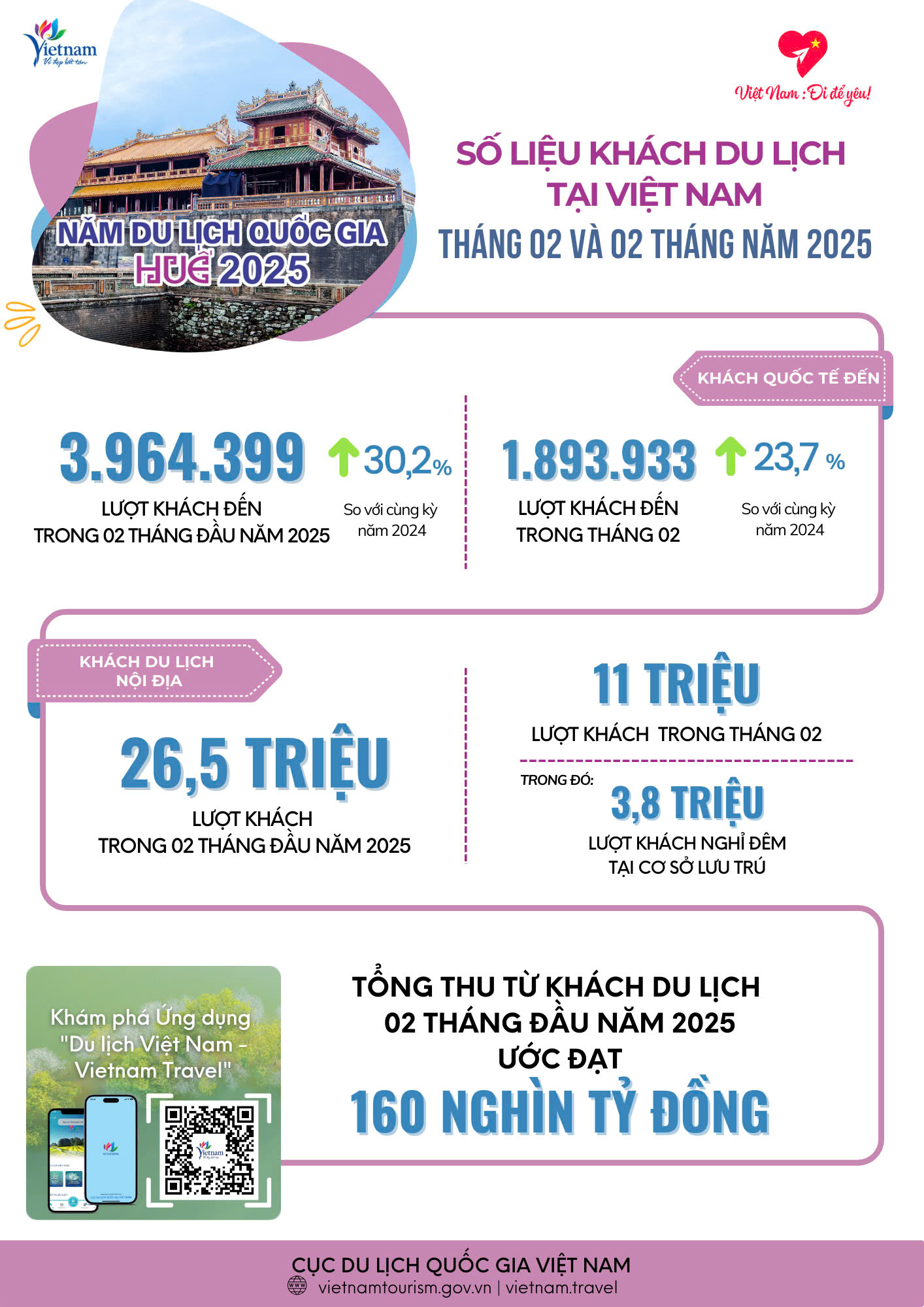 [Infographic] Tình hình khách du lịch tháng 2 và 2 tháng đầu năm 2025