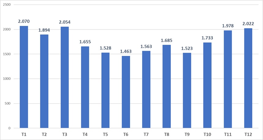 Biểu đồ 1. Khách quốc tế theo tháng, năm 2025 (nghìn lượt)