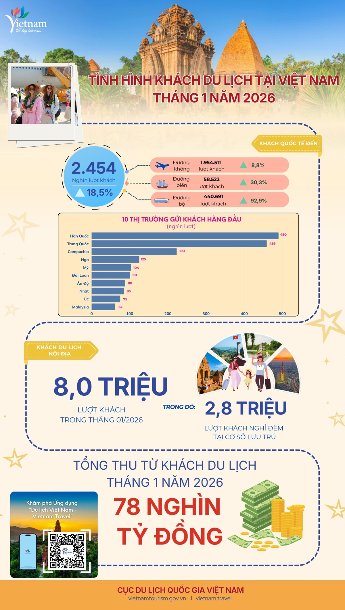[Infographic] Tình hình khách du lịch tháng 1 năm 2026
